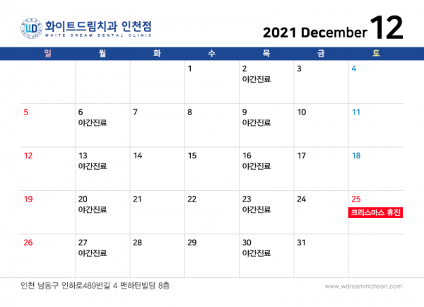 인천화이트드림 치과의 2021년 12월 진료 안내입니다!