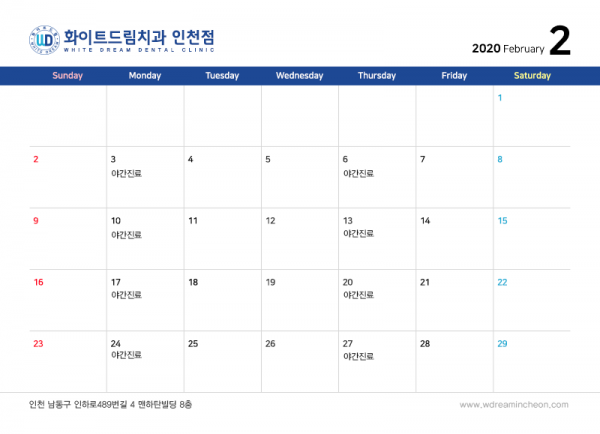인천화이트드림 치과의 2020년 2월 진료 안내입니다!
